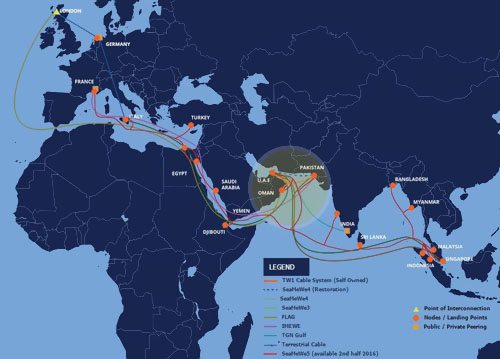 依照方案,PEACE海底光缆体系第一阶段将衔接巴基斯坦、吉布提、索马里和肯尼亚,第二阶段将向南部扩展,衔接至非洲和欧洲。